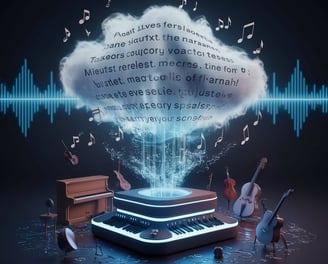 Estas aplicaciones convierten descripciones escritas en composiciones musicales mediante inteligencia artificial. Utilizan modelos entrenados para interpretar emociones, géneros musicales, instrumentos y estructuras sonoras a partir de palabras o frases, generando piezas únicas sin necesidad de conocimientos musicales previos. Esta tecnología tiene aplicaciones en producción audiovisual, creación artística, videojuegos y bienestar emocional, facilitando el acceso a la composición musical a todo tipo de usuarios.